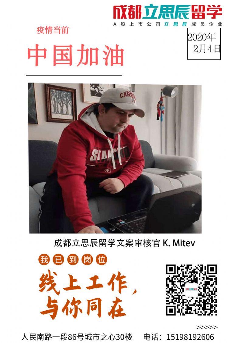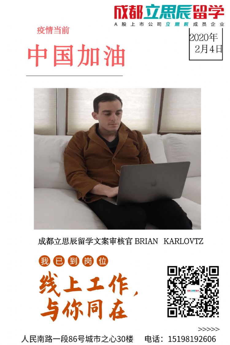 由于疫情持续严重,为了避免交叉感染,同时又能为广大留学客户群提供及时高效的在线咨询服务,成都立思辰留学将于2月3日--9日实行线上办公。待疫情控制稳定即恢复原本工作模式。