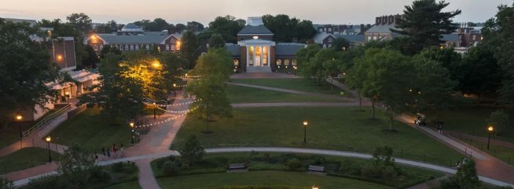 特拉华大学校园内既有乔治王朝式的教学大楼,也有翠绿的草皮和绿树成荫的林荫小道。