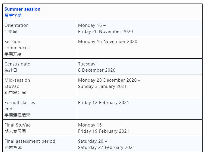 今年UTS的夏季学期期间为2020年11月至2021年2月。夏季学期的课程主要是开放给希望学习一些额外课程的学生,同学可以利用这段时间为自己的学业进行充电,因此国际学生可以在夏季减少学习量。